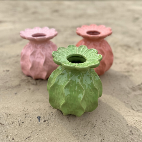 Dit groene vaasje brengt een vleugje natuur in huis. Leuk met een paar zijden bloemen.